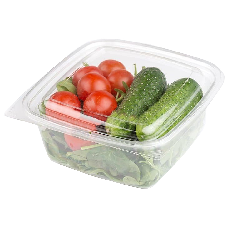 Контейнер с совмещенной крышкой квадратный ПЭТ ПР-СК-РГ-750 "А" 750мл 168х168х60мм цвет прозрачный.