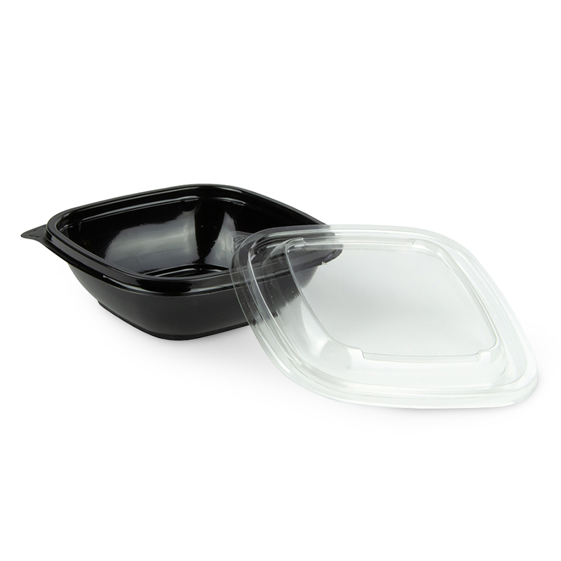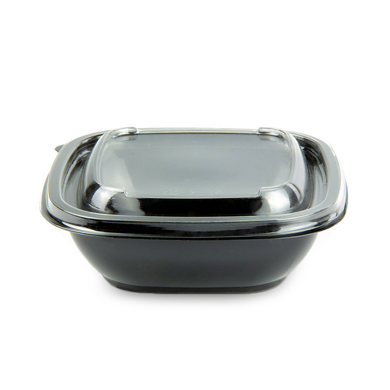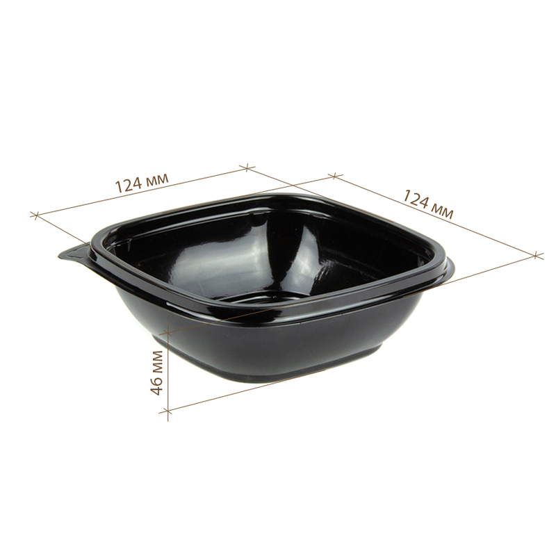 Контейнер серии 1212 объемом 250 мл изготовлен из ПЭТ черного цвета, предназначен для фасовки салатов, десертов, овощей, солений, холодных закусок. Размер контейнера 126х126х38 мм.