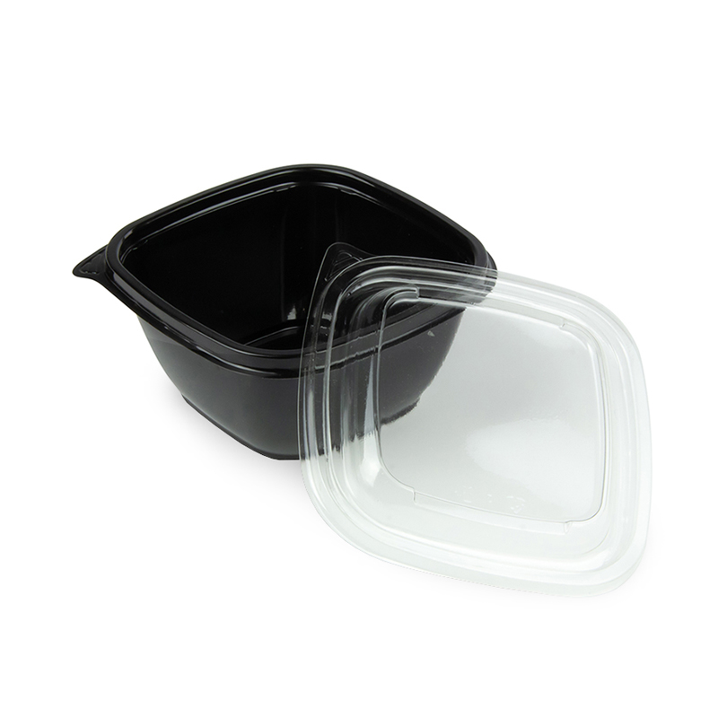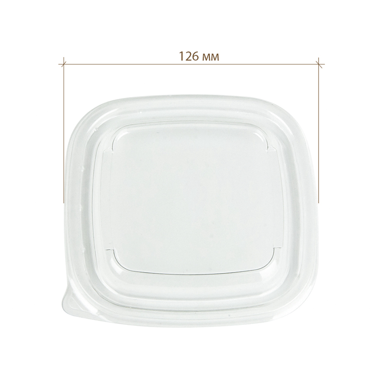 Крышка к контейнеру серии 1212 изготовлена из ПЭТ прозрачного цвета. Герметичная, плотно прилегает к краю контейнера. Размер 126х126 мм